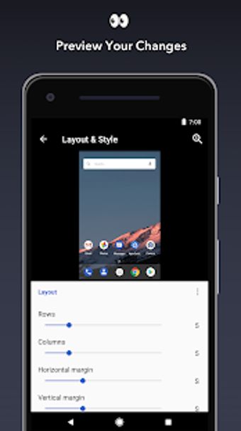 Niektóre opcje obejmują dostosowanie siatki ekranu głównego, lepsze efekty przejścia i sortowanie aplikacji szuflad.